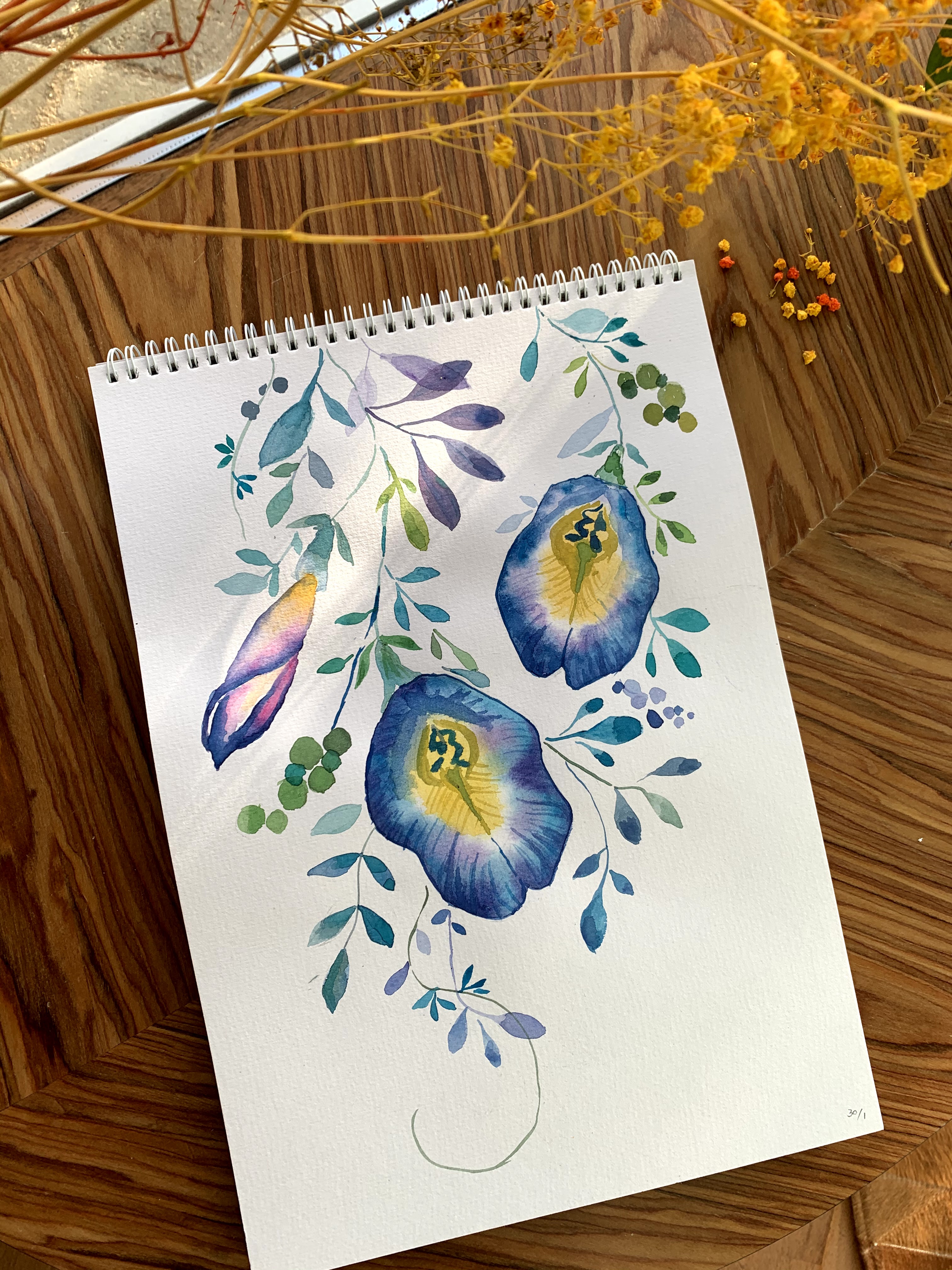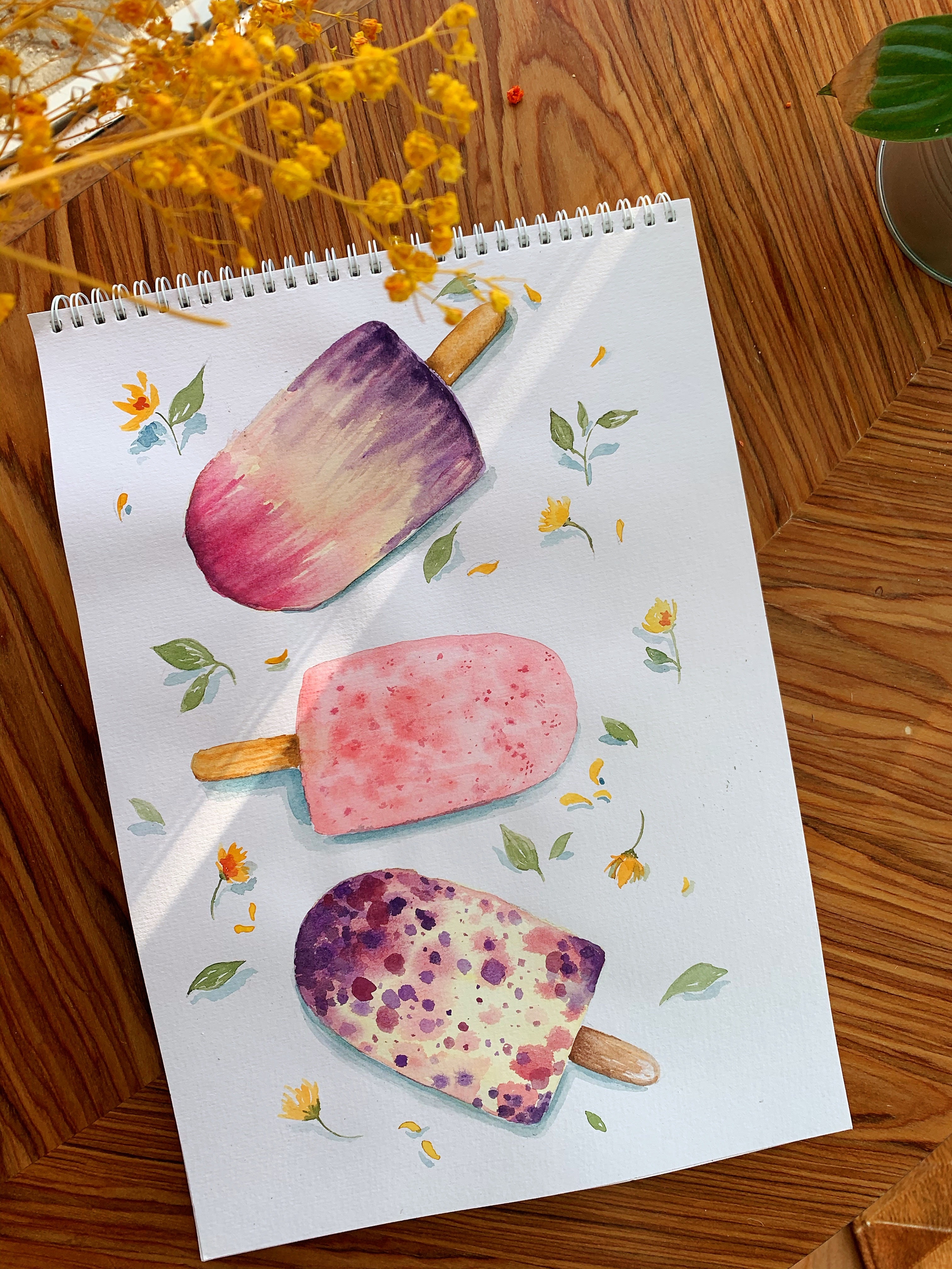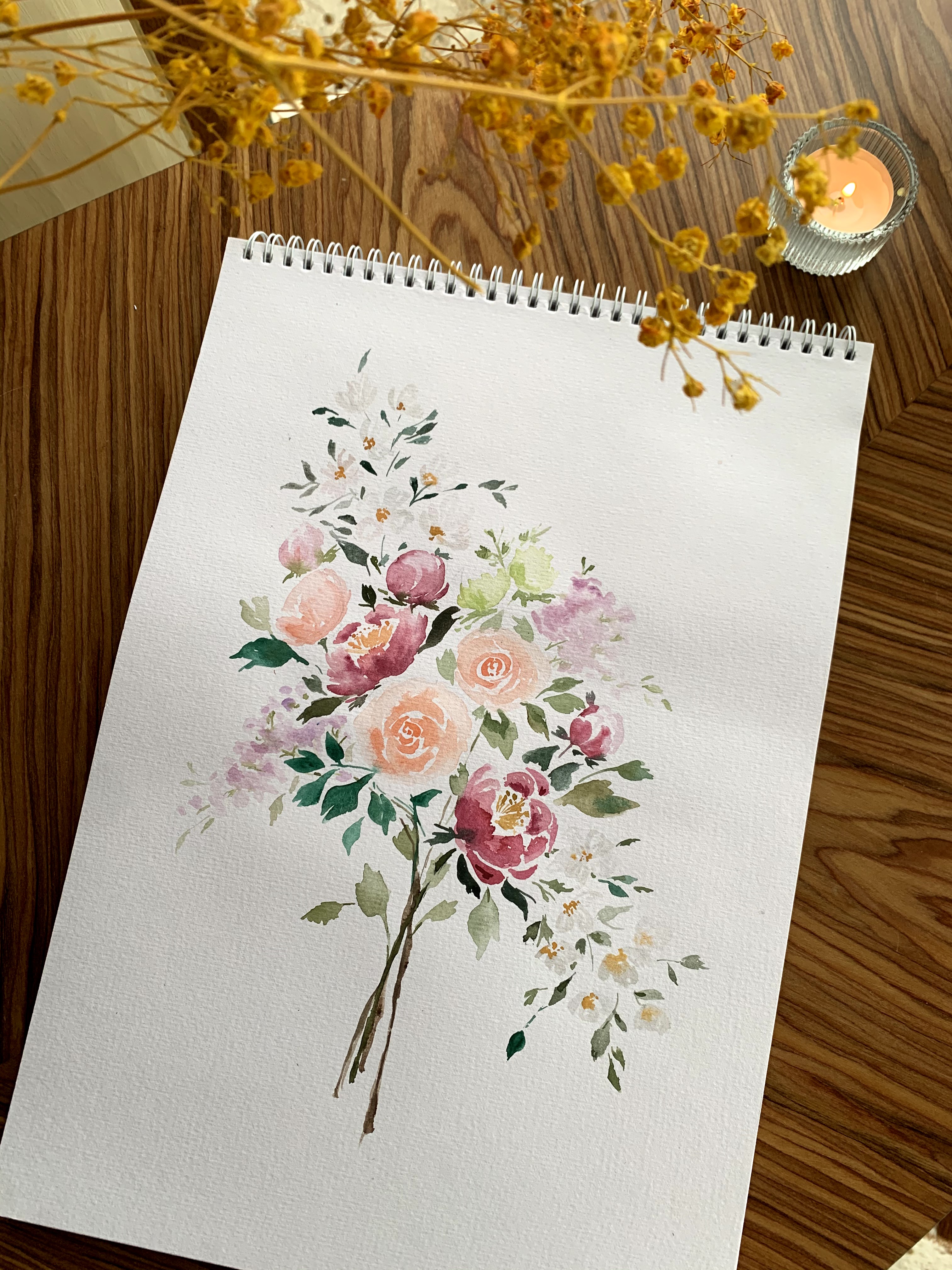 她分享在油管的视频就非常全了,以花和一些小物为主,美感很强,后来我还在Petreon上订阅她,每个月花2美金可以下载一些她的原创素材。照着她的视频画简直太棒了,每张小画不用一两个小时就可以搞定。可惜这个阶段我的新画笔还是不给力,笔头太粗没发花很多细节。不过在调色和用笔上看视频绝对是比照着书或者成品画要容易得多。