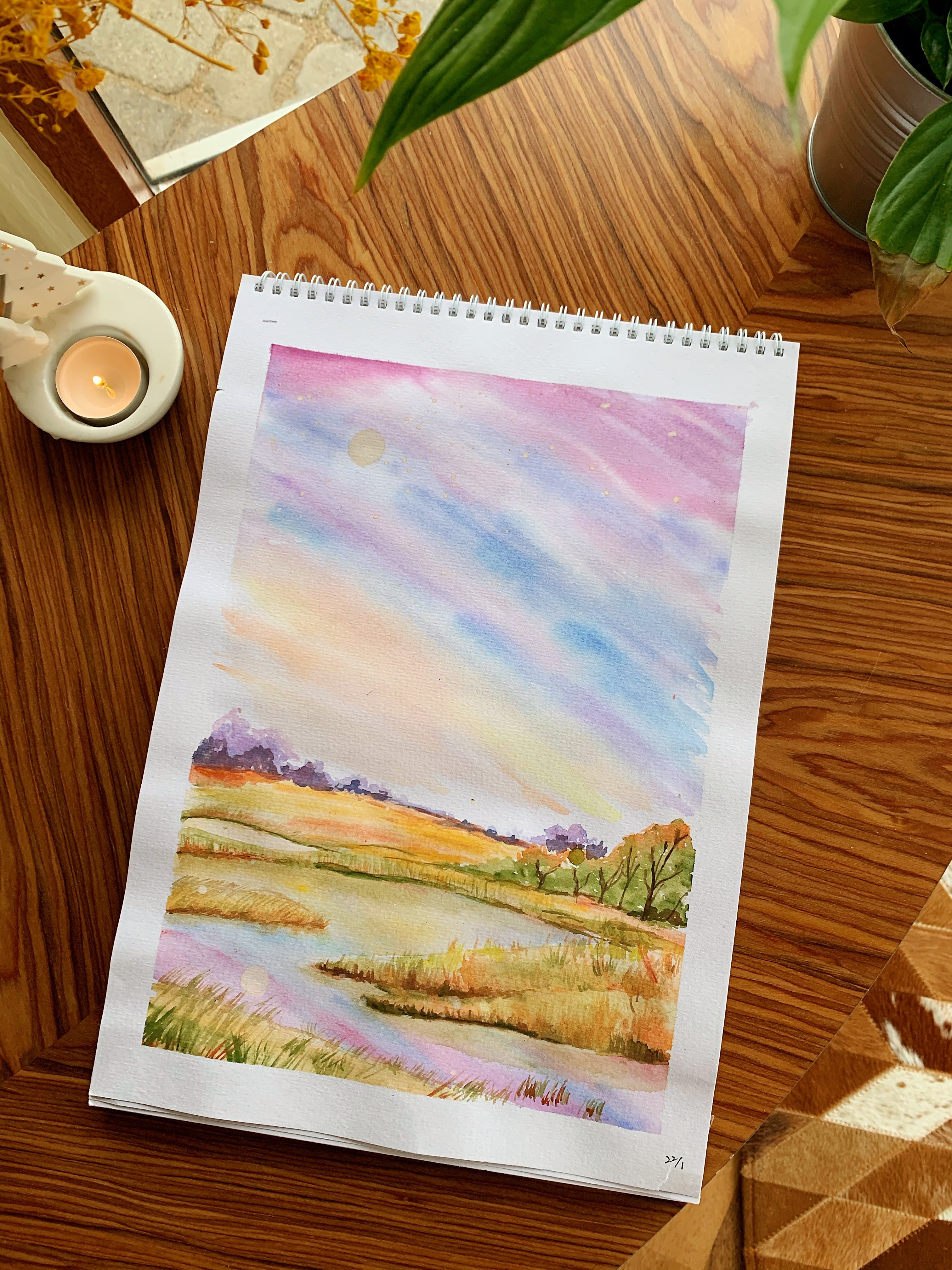 去年因为新冠丹麦12月再次进入封城阶段,我们也被迫在家办公。不过也因此可以发展很多爱好。于是我又一次把一半已经干掉的颜料拿出来,重新买了两批画笔,好在大部分颜料都还能用,练习本和300g的高质量画纸都很全,极大的鼓励了我。