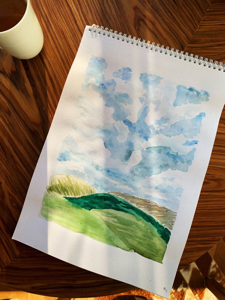 不常画风景,如果画也是粉嘟嘟的这种。超喜欢云彩多变的颜色,好像在丹麦夏天的晚霞。